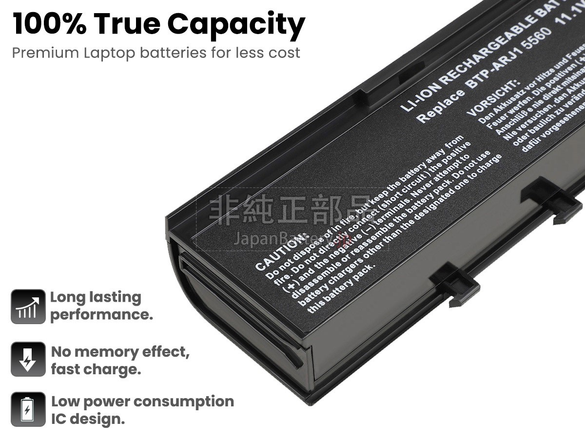 JapanBattery.jpで売り出すバッテリーは皆質の高い代替品です。関連した商標やブランドは元の登録者に属します。言及されたブランドや型番は互換性を説明するためのみ。製品に何か満足できないところがあったら、オンラインやメールで連絡して、こちらは24時間内返答します。お客様に100%満足させるのが目標です。