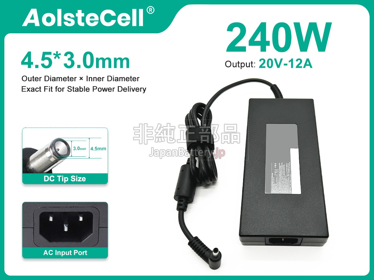 MSI 240W 20V 12A 4.5*3.0MMアダプターの互換リストはまだ不完全で、もし設備に適応できるかを確認できなければ、「製品サーチサポート」で設備の型番をこちらに教えて、速やかに適合なアダプターを選んでさしあげます。