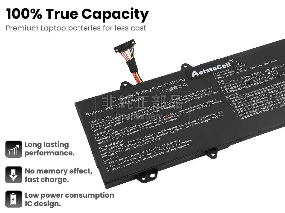 内蔵されたセルはノートパソコンのバッテリーの一番大切な部分です。Asus ZenBook UX32LNノートPCバッテリーはオリジナルレベルのA+セルセルで組み立てられ、安全性がより高く、駆動時間も寿命もより長いです。