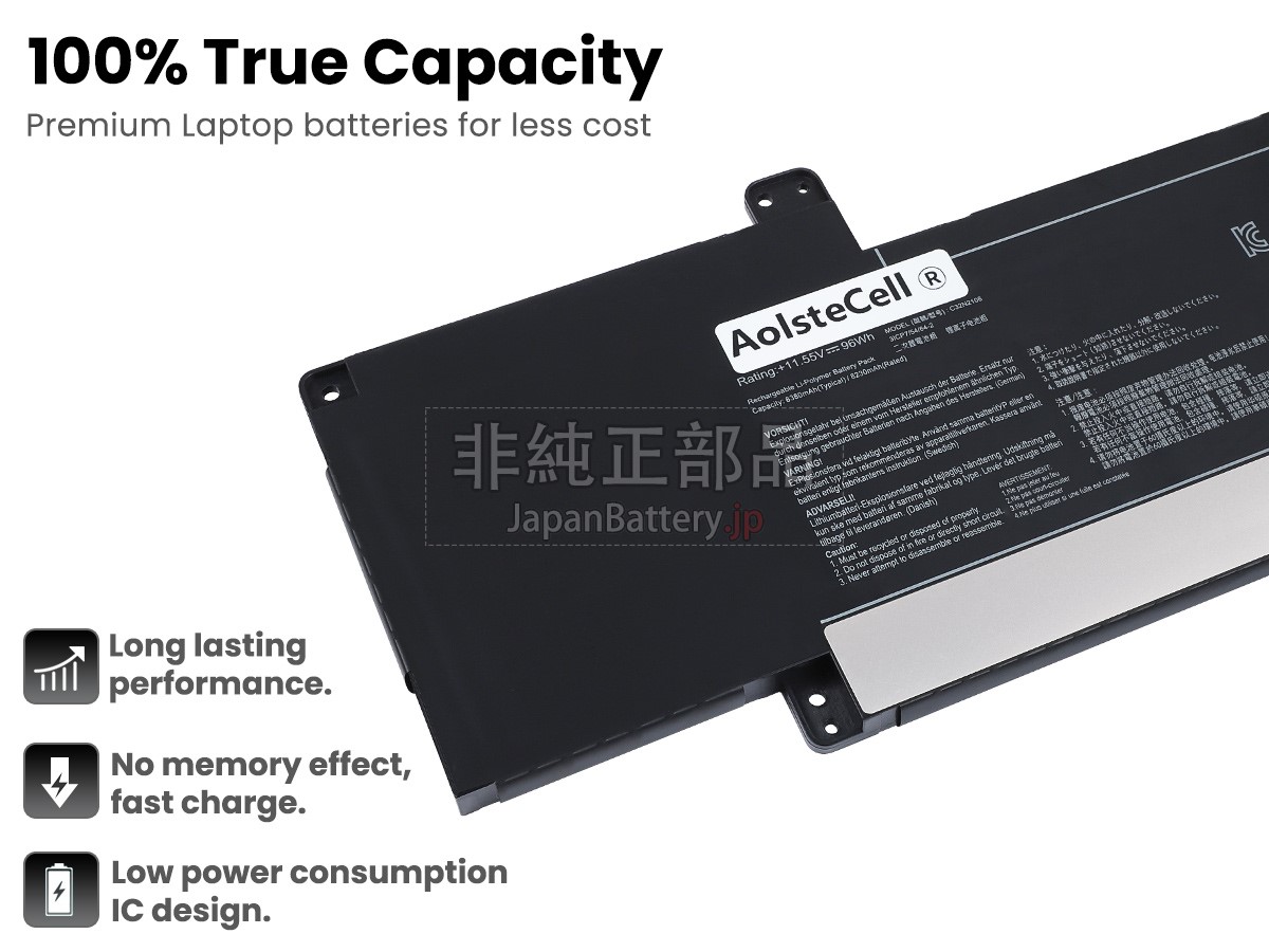システムの安定は無視できません!テキサスTIチップを使い、バッテリーは充電速度がより早く、温度、電圧、電流の監視精度もより高い;オリジナルデザインのシェル、互換性100%で、Asus ZenBook UX7602ZM-ME108Wバッテリーとノートパソコンの無障害通信ができます。