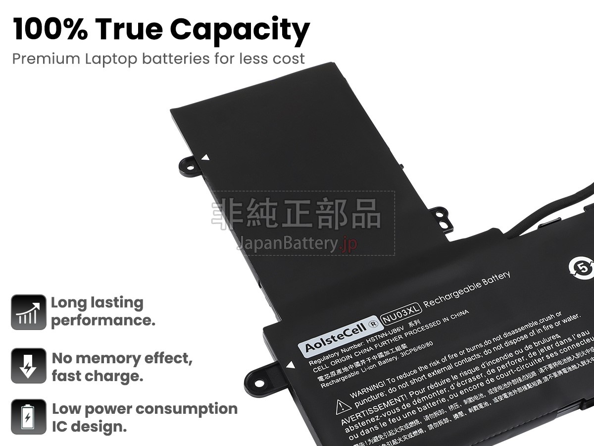 内蔵されたセルはノートパソコンのバッテリーの一番大切な部分です。HP Stream X360 11-AA004URノートPCバッテリーはオリジナルレベルのA+セルセルで組み立てられ、安全性がより高く、駆動時間も寿命もより長いです。