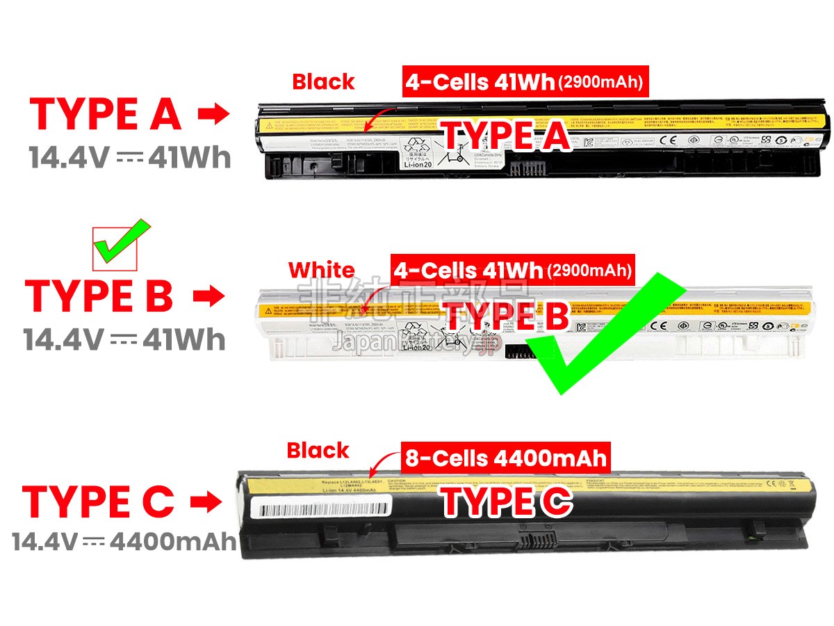 ご安心に購入するために、JapanBattery.jpはすべてのお客様に一流の製品とアフターケアを提供し、購入する前にいくつの問題を注意しております。1、自分に必要のはLenovo IdeaPad G405Sバッテリーであること、過ちを防ぐため、ご注文時の型番を付記し、正しい電池を購入したかどうかを判断することができる。