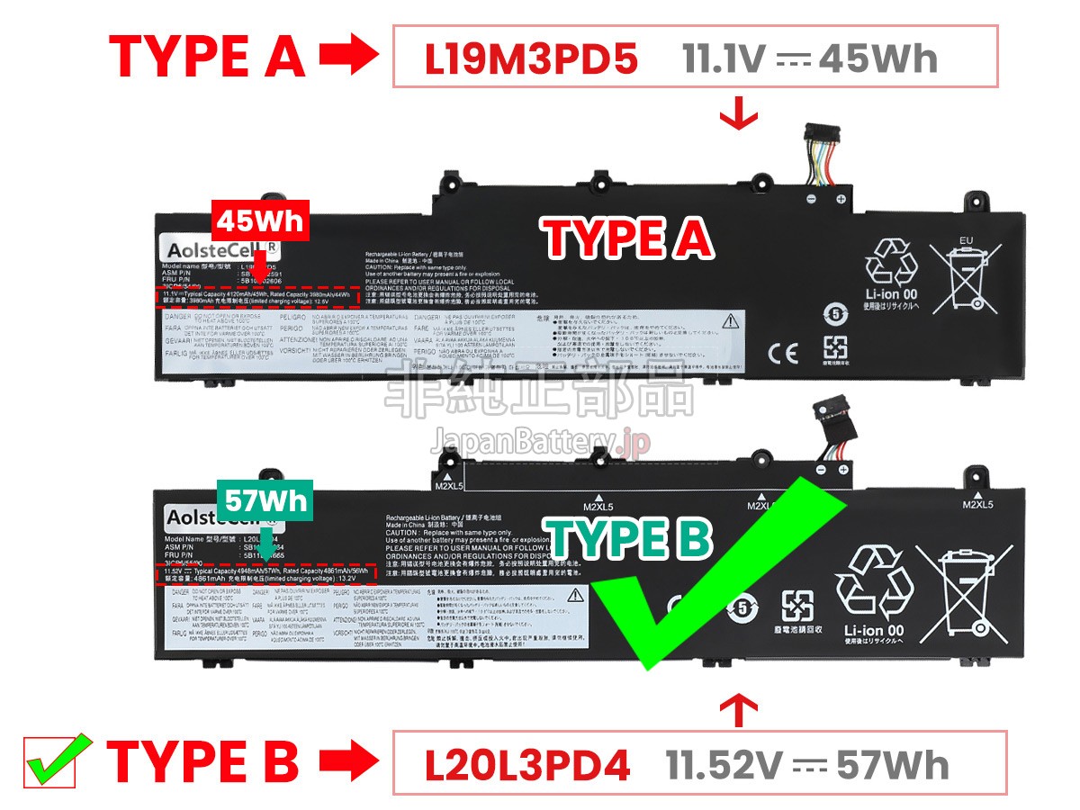ご安心に購入するために、JapanBattery.jpはすべてのお客様に一流の製品とアフターケアを提供し、購入する前にいくつの問題を注意しております。1、自分に必要のはLenovo L20L3PD4バッテリーであること、過ちを防ぐため、ご注文時の型番を付記し、正しい電池を購入したかどうかを判断することができる。