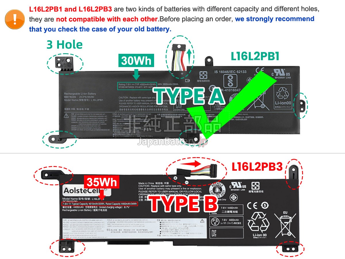 ご安心に購入するために、JapanBattery.jpはすべてのお客様に一流の製品とアフターケアを提供し、購入する前にいくつの問題を注意しております。1、自分に必要のはLenovo V15 ADA-82C7009SMXバッテリーであること、過ちを防ぐため、ご注文時の型番を付記し、正しい電池を購入したかどうかを判断することができる。
