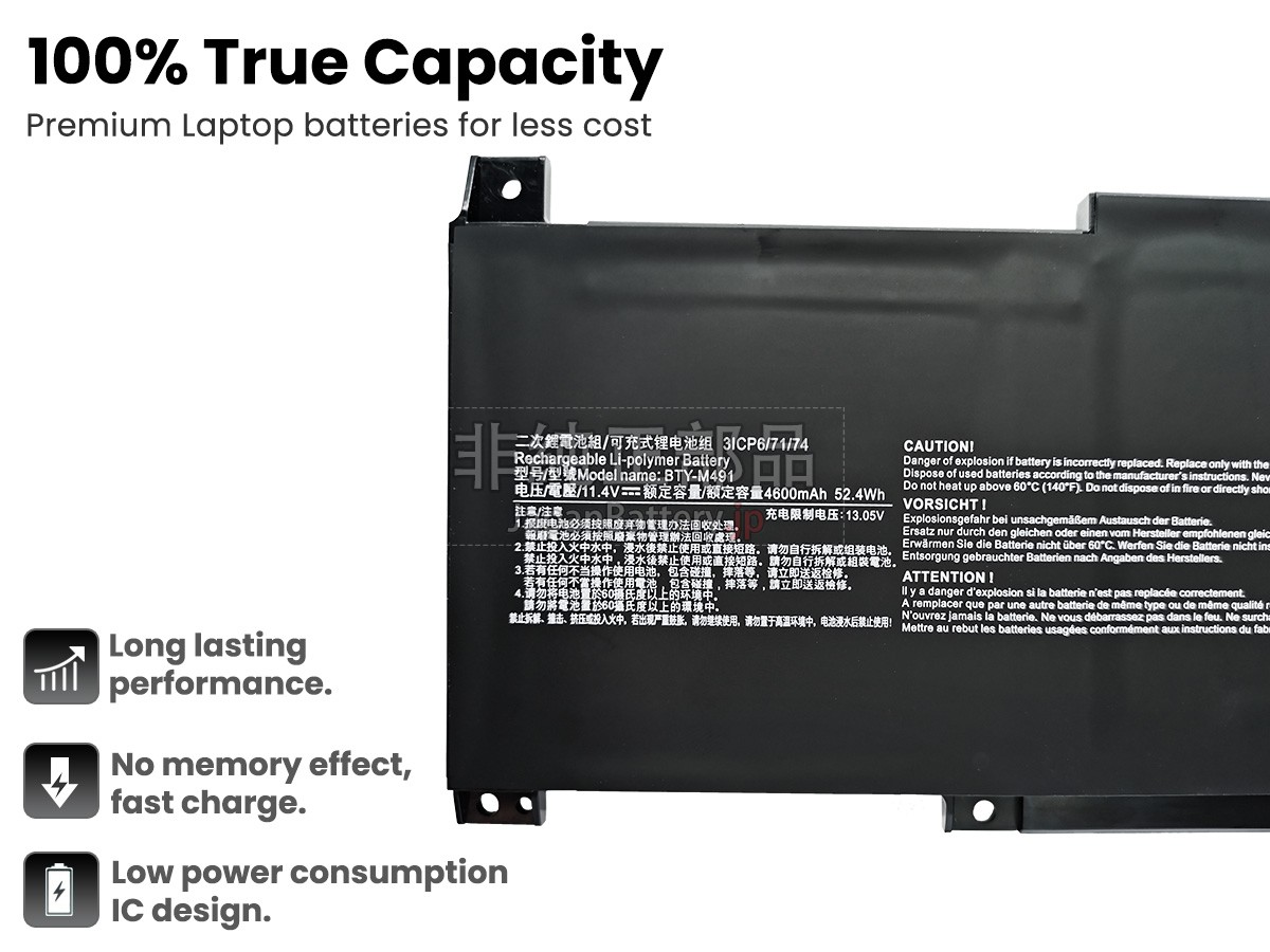 システムの安定は無視できません!テキサスTIチップを使い、バッテリーは充電速度がより早く、温度、電圧、電流の監視精度もより高い;オリジナルデザインのシェル、互換性100%で、MSI MODERN 15 B12M-028NLバッテリーとノートパソコンの無障害通信ができます。